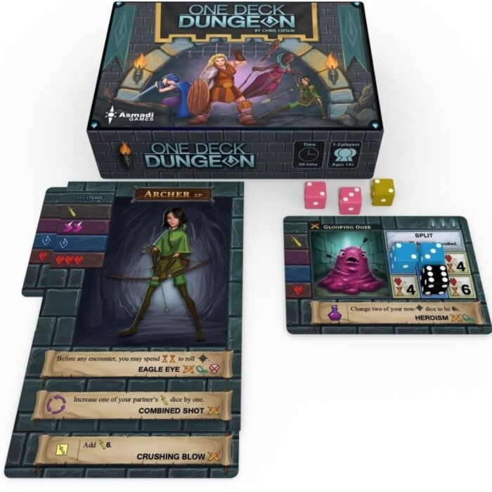 Το One Deck Dungeon έχει σχεδιαστεί για 1-2 παίκτες. Με πολλαπλά σετ, μπορείτε να προσθέσετε περισσότερους παίκτες.