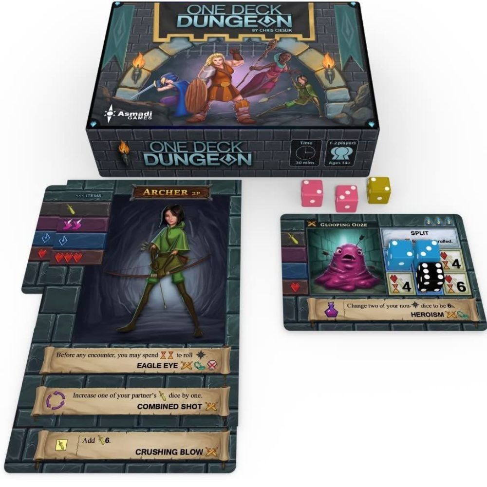 Το One Deck Dungeon είναι ένα παιχνίδι καρτών “roguelike” — μια εξερεύνηση μπουντρουμιού που είναι διαφορετική κάθε φορά, δύσκολη για επιβίωση, με έναν χαρακτήρα που χτίζετε από την αρχή. Η τράπουλα αποτελείται από διάφορους εχθρούς για να πολεμήσετε και άλλους κινδύνους από το μπουντρούμι. Κάθε κάρτα, όμως, απεικονίζει τόσο το εμπόδιο που πρέπει να ξεπεράσετε όσο και τις ενδεχόμενες ανταμοιβές για την επιτυχία σας. Όταν νικάτε μια κάρτα, την κατακτάτε ως εμπειρία, αντικείμενο ή ικανότητα, την τοποθετείτε στην αντίστοιχη πλευρά της κάρτας του χαρακτήρα σας για να δείξετε τα οφέλη της.