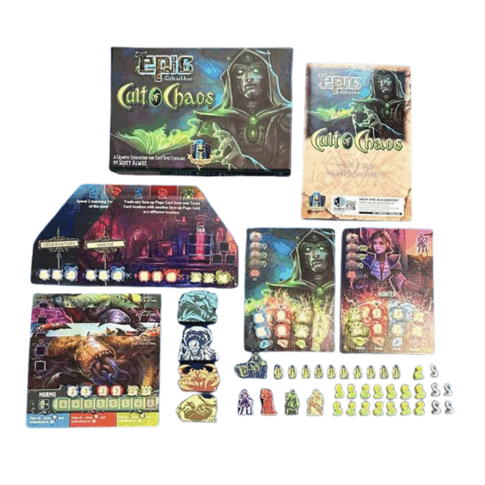Η επέκταση Tiny Epic Cthulhu – Cult of Chaos προσθέτει νέες διαστάσεις στο παιχνίδι Tiny Epic Cthulhu, φέρνοντας το χάος και τη σκοτεινή δύναμη των λατρών του Cthulhu. Αυτή η επέκταση εισάγει νέες κάρτες, μηχανισμούς και προκλήσεις, ενισχύοντας την εμπειρία των παικτών με ακόμα περισσότερες στρατηγικές επιλογές και ένταση. Κύρια Χαρακτηριστικά: Νέες Κάρτες Λατρών του Cthulhu: Η επέκταση προσθέτει νέες κάρτες με χαρακτήρες που επιφέρουν νέες απειλές και στρατηγικές, ενισχύοντας την ατμόσφαιρα του παιχνιδιού και τις επιλογές των παικτών. Ανατροπές στο Gameplay: Νέοι μηχανισμοί παιχνιδιού φέρνουν περισσότερες προκλήσεις και στρατηγικές επιλογές, απαιτώντας από τους παίκτες να προσαρμόσουν τις τακτικές τους και να διαχειριστούν τις δυνάμεις του χάους!