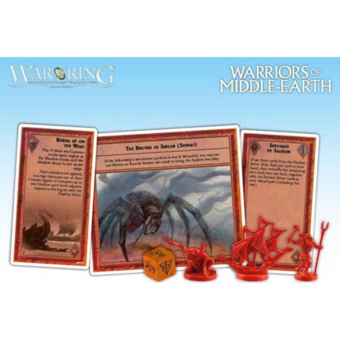 Το War of the Ring: Warriors of Middle-earth περιλαμβάνει τους Έντς, τους Νεκρούς του Ντάνχαροου, τους Μεγάλους Αετούς των Ομιχλωδών Βουνών, τους Κουρσάρους του Ουμπάρ, τους Άγριους Χίλμεν του Ντάνλαντ και τις Γιγάντιες Αράχνες. Με αυτή τη νέα επέκταση για το War of the Ring (δεύτερη έκδοση), αυτοί οι πολεμιστές και τα πλάσματα της Μέσης Γης – που προηγουμένως εμφανίζονταν μόνο ως ειδικές Κάρτες Γεγονότων – γίνονται πλέον αναπόσπαστο μέρος του παιχνιδιού, με μοναδικές φιγούρες και ξεχωριστές ικανότητες.