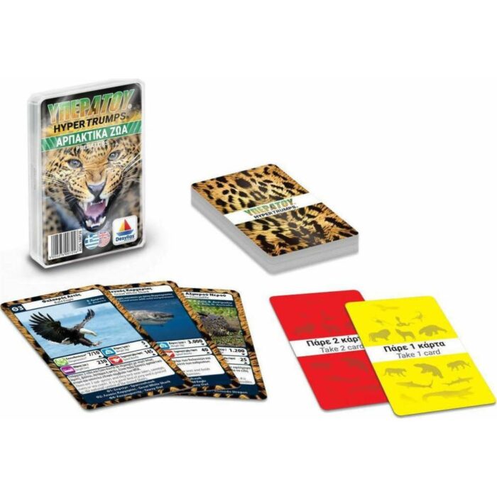 Οι καλύτεροι μας φίλοι έρχονται μέσα από τις κάρτες ΥΠΕΡΑΤΟΥ. Σύγκρινε τα στατιστικά ενός Λαμπραντόρ, ενός Χάσκυ ή ενός Δαλματίας και κέρδισε. Χρησιμοποίησε έξυπνα την κάρτα ΥΠΕΡΑΤΟΥ! Περιεχόμενα 32 κάρτες Σκυλιά 2 μονόχρωμες κάρτες 1 κάρτα κανόνων